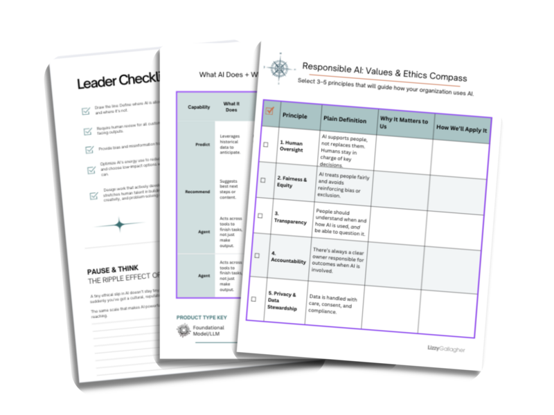 Translate abstract AI principles into plain, practical language that fits your organization’s values, so everyone knows what “responsible” looks like in action.